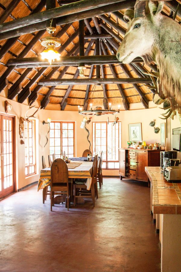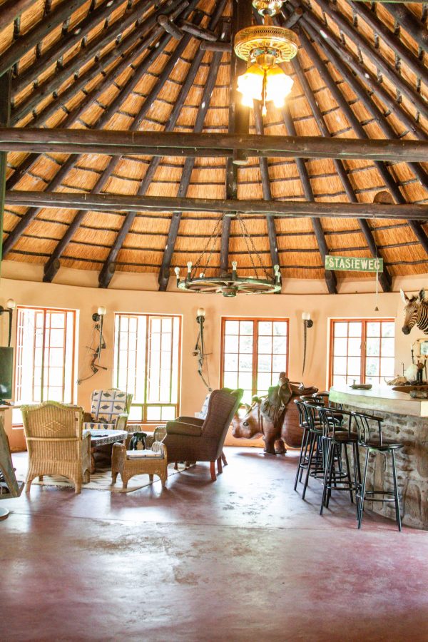 Mittelpunkt des täglichen Lebens stellt unsere reetgedeckte Lapa mit Bar und einer gemütlichen Feuerstelle dar. Hier servieren wir Ihnen 3 Mahlzeiten täglich und lassen die Abende am knisternden Lagerfeuer ausklingen. An der Bar können Sie ein kaltes Bier geniessen und spannenden Jagdgeschichten lauschen. Alkoholische Getränke sind in der Tagesrate inklusive.